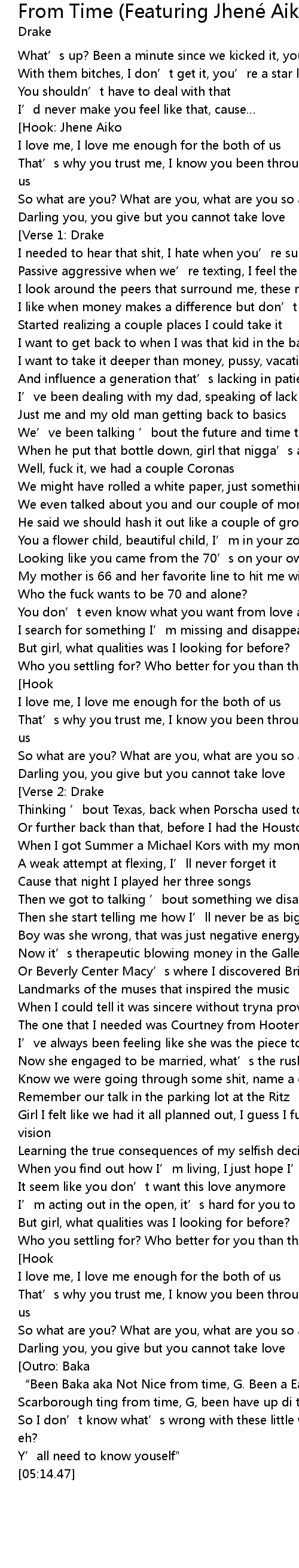 | [03:41.78] | Know we were going through some shit, name a couple that isn' t |
