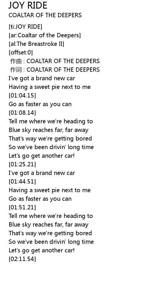 | [00:58.97] | I've got a brand new car |