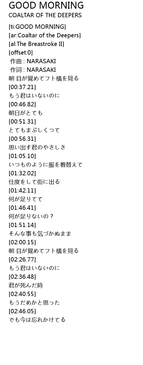 | [02:19.81] | 朝 目が覚めてフト横を見る |