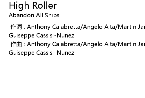 | [00:00.000] | 作曲 : Anthony Calabretta/Angelo Aita/Martin Jan Broda/Sebastiano Guiseppe Cassisi-Nunez |