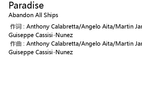 | [00:00.000] | 作曲 : Anthony Calabretta/Angelo Aita/Martin Jan Broda/Sebastiano Guiseppe Cassisi-Nunez |