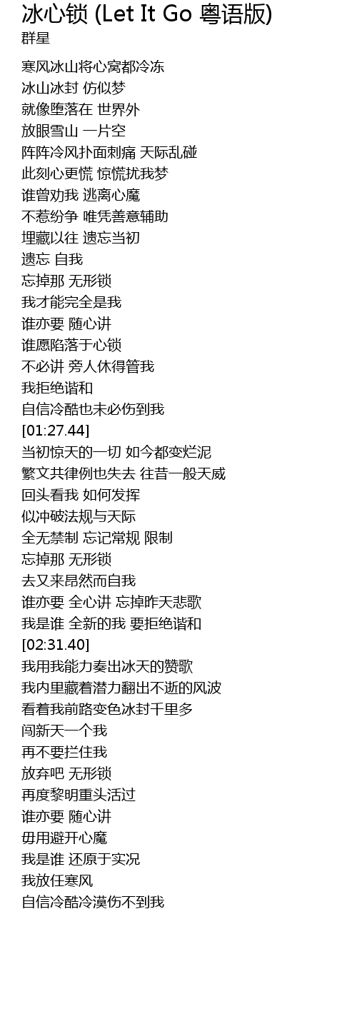| [02:33.42] | 我用我能力奏出冰天的赞歌 |