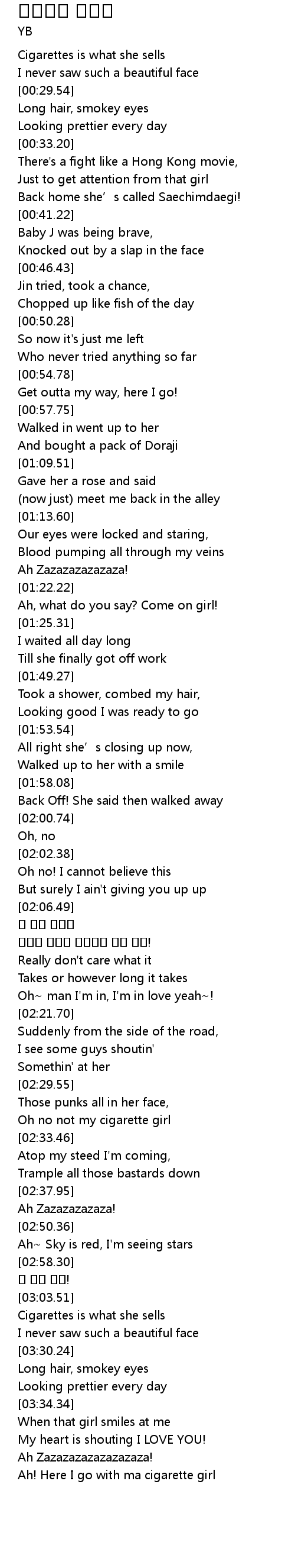 | [03:45.97] | Ah! Here I go with ma cigarette girl |