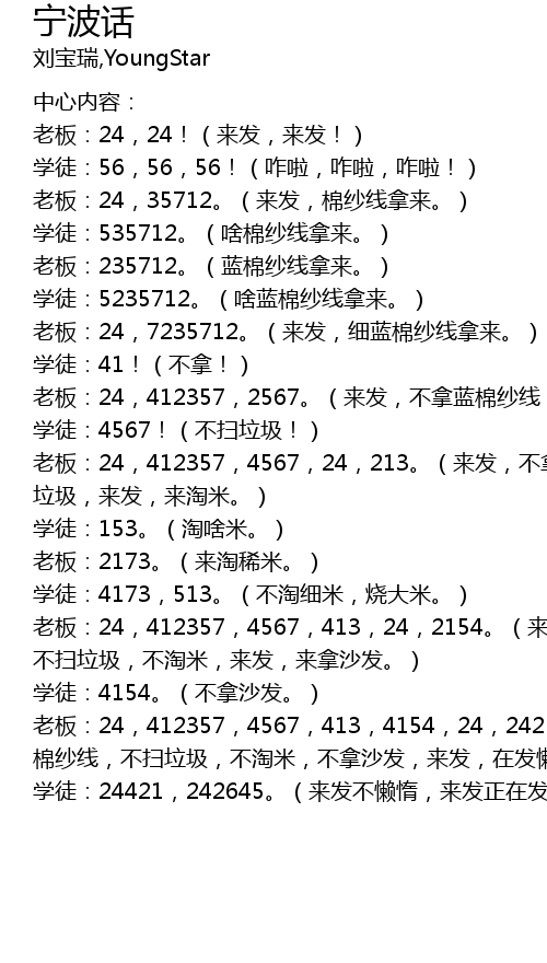 | lao ban: 24, 412357, 4567, 413, 4154, 24, 2421. lai fa, bu na lan | |