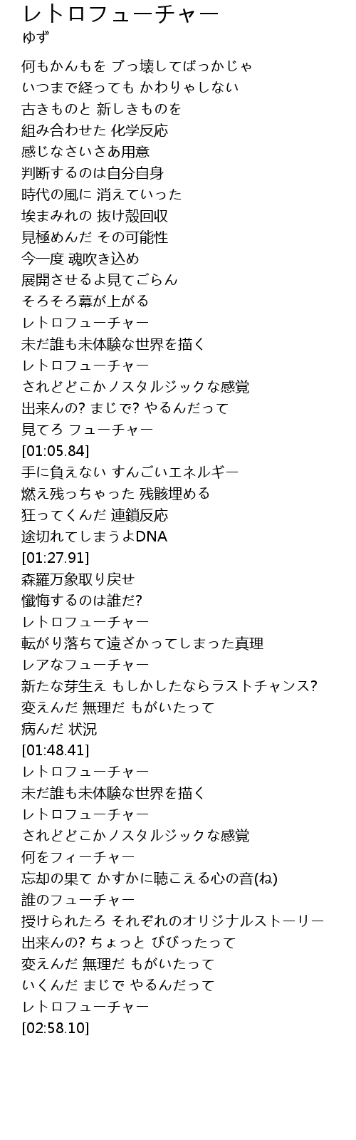 | [02:30.80] | されどどこかノスタルジックな感覚 |