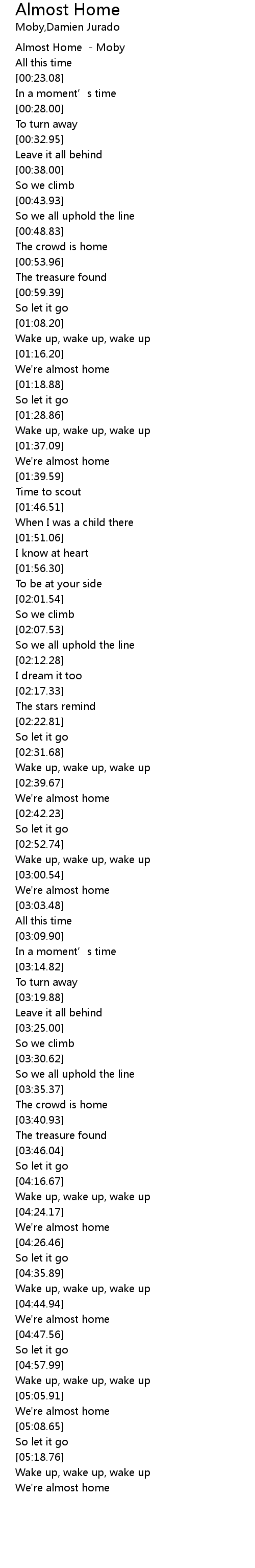 | [00:00.45] | Almost Home - Moby |