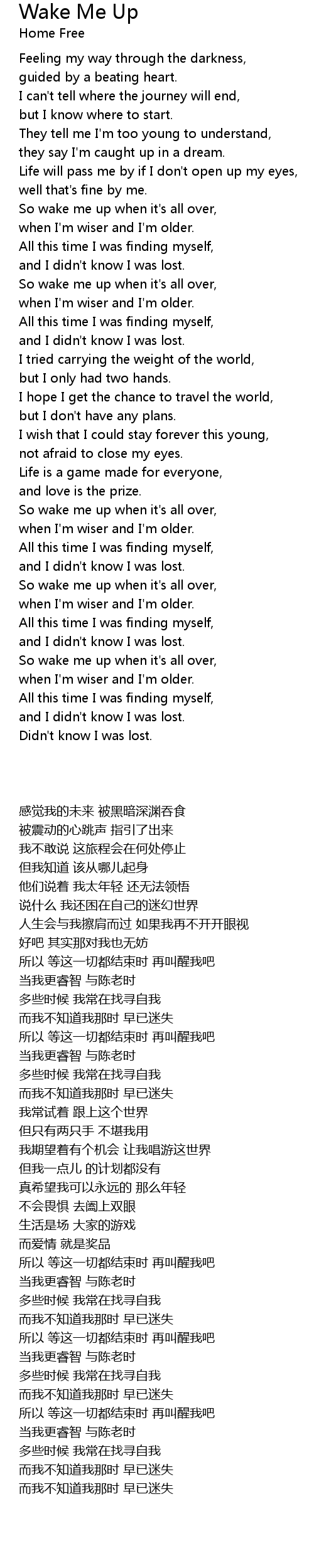 So wake me up when it's all over, |