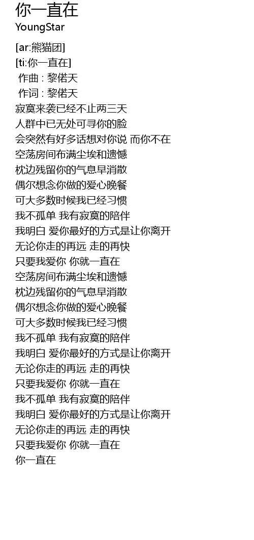 | ti: nǐ yī zhí zài | |