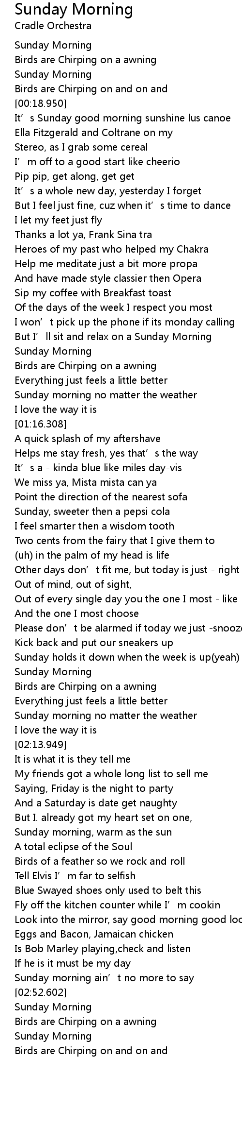 | [02:53.082] | Sunday Morning |