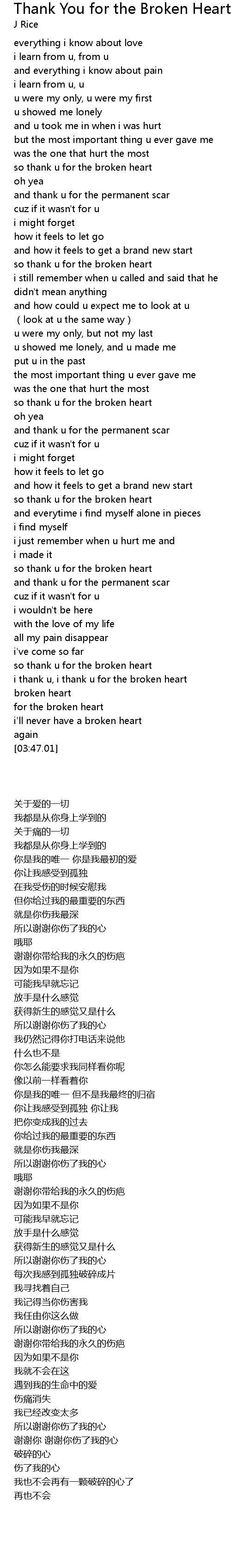 | [00:47.20] | so thank u for the broken heart |
