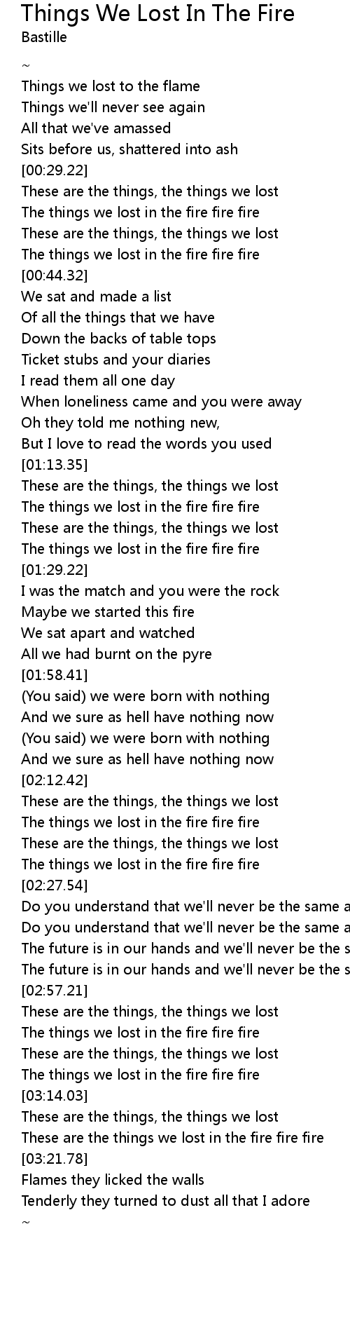 These are the things we lost in the fire fire fire |