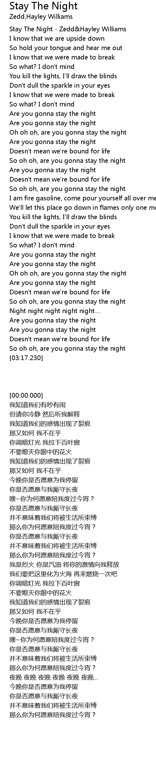 Stay The Night - Zedd&Hayley Williams |