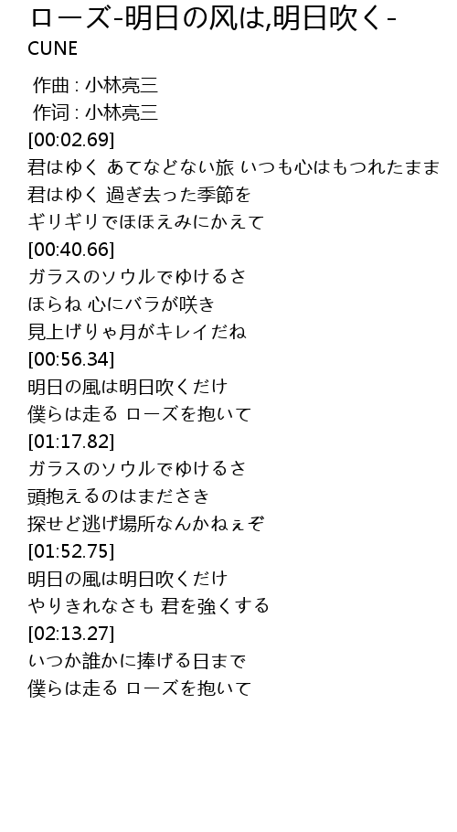 | [01:53.00] | 明日の風は明日吹くだけ |