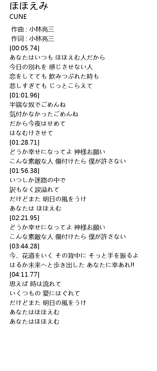 | [00:08.67] | あなたはいつも ほほえむ人だから |
