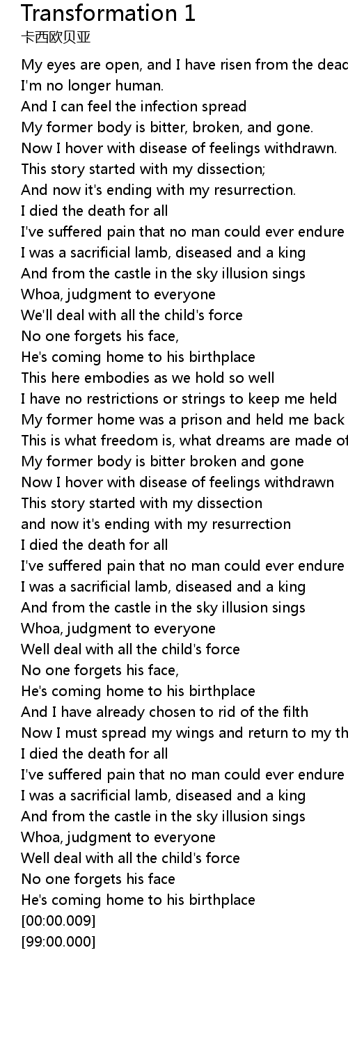 | [00:54.66] | I was a sacrificial lamb, diseased and a king |