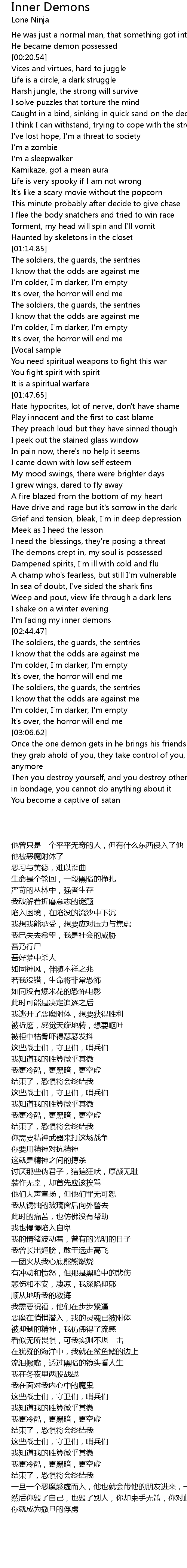 I'm facing my inner demons |