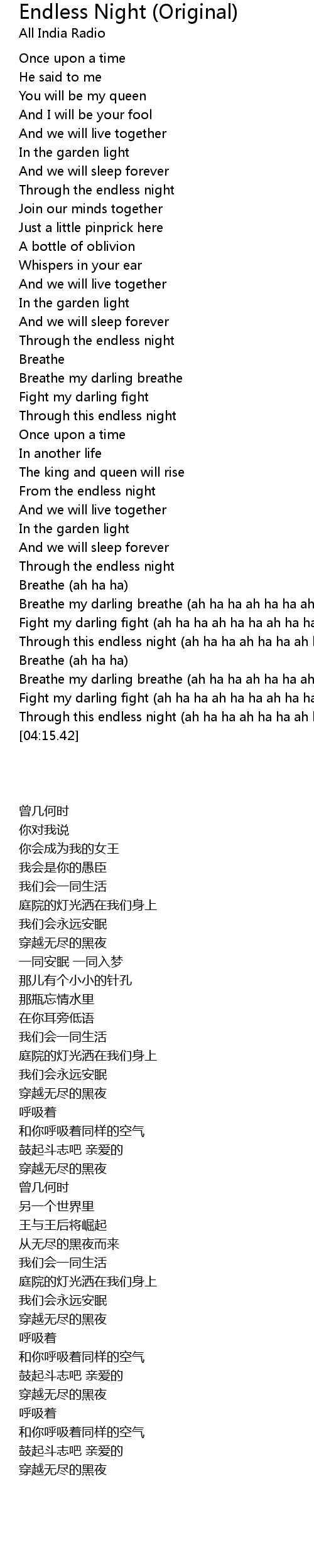 Through this endless night (ah ha ha ah ha ha ah ha ha) |