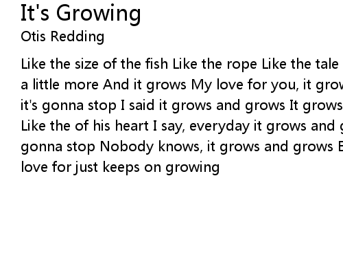 | Like the size of the fish Like the rope Like the tale of But everyday, it grows a little more And it grows My love for you, it grows Hey, hey, hey But where it's gonna stop I said it grows and grows It grows and grows Like the need of Like the of his heart I say, everyday it grows and grows Hey, hey But where it's gonna stop Nobody knows, it grows and grows Everyday And everynight, it grows My love for just keeps on growing |