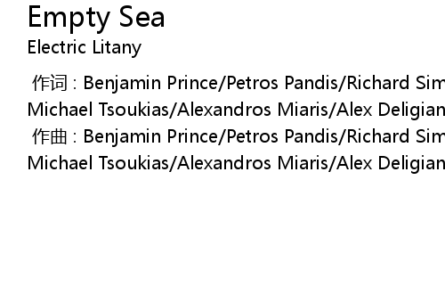 | [00:00.000] | 作曲 : Benjamin Prince/Petros Pandis/Richard Simic/Prokopis Michael Tsoukias/Alexandros Miaris/Alex Deligiannidis/Antonis Kouris |
