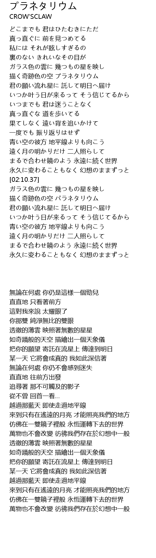 | [01:04.34] | 描く奇跡色の空 プラネタリウム |