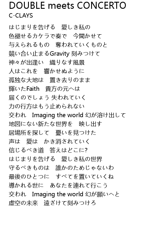 | [03:24.00] | 交われ Imaging the world 幻が願いへと |