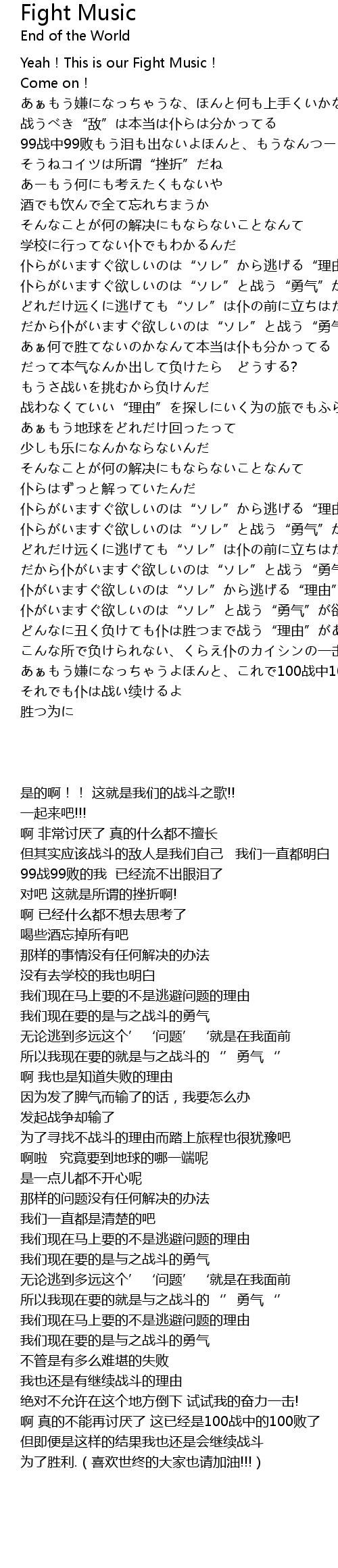 | [00:03.753] | Yeah!This is our Fight Music! |