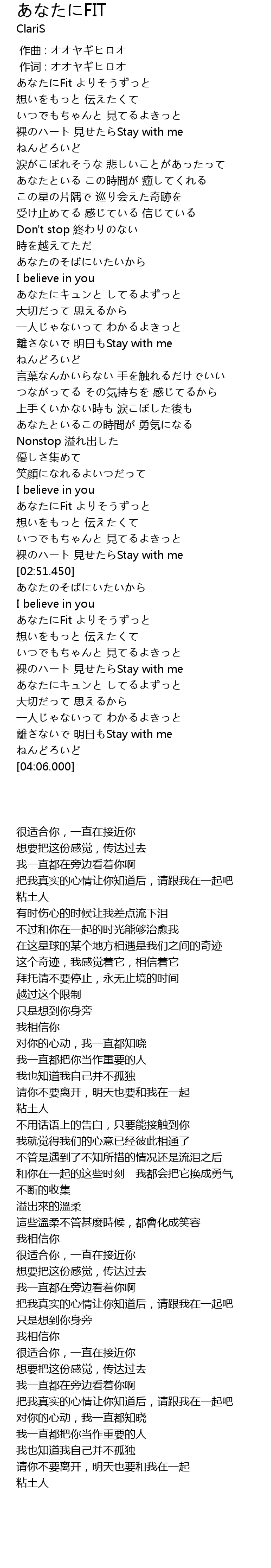| [02:33.120] | あなたにFit よりそうずっと |