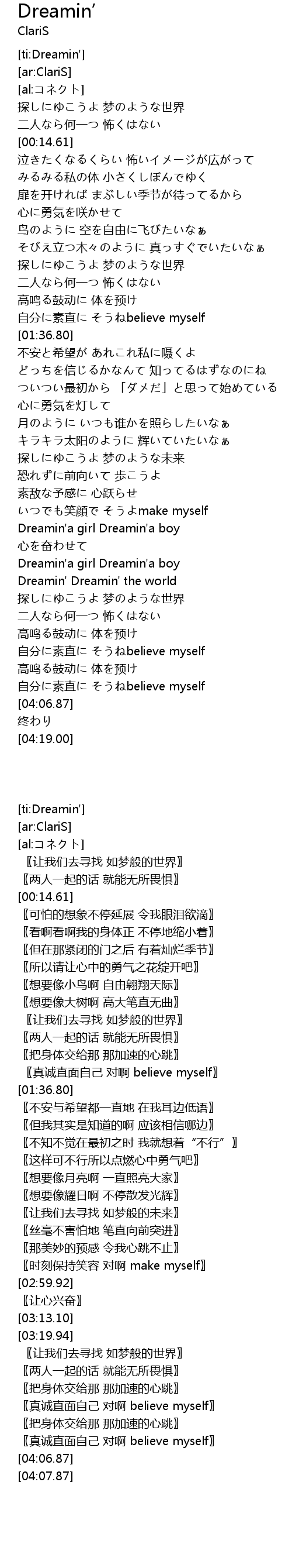 | [02:59.92] | Dreamin'a girl Dreamin'a boy |