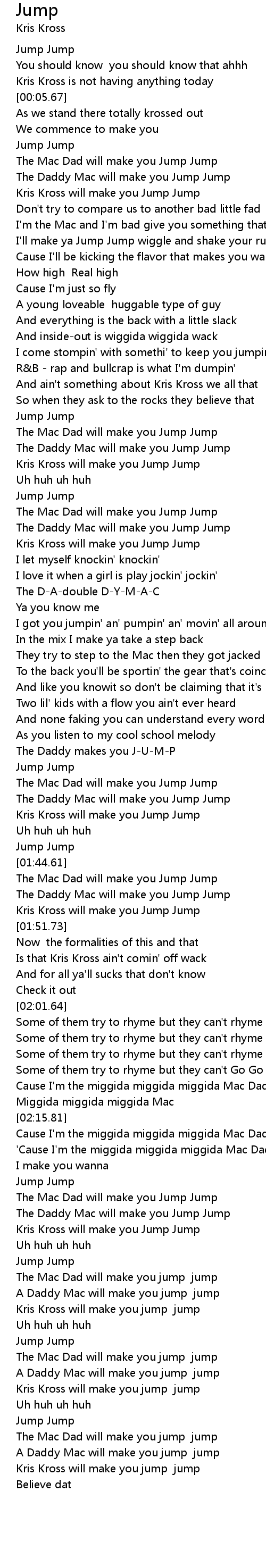 [02:27.22] Kris Kross will make you Jump Jump
