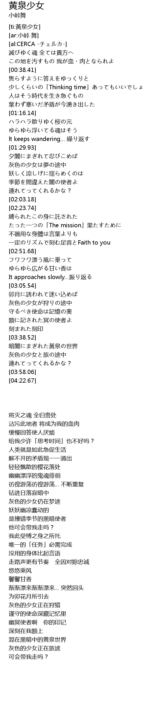 | [03:38.71] | 暗闇にまぎれた黃泉の世界 |