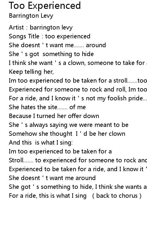 | Songs Title: too experienced | |