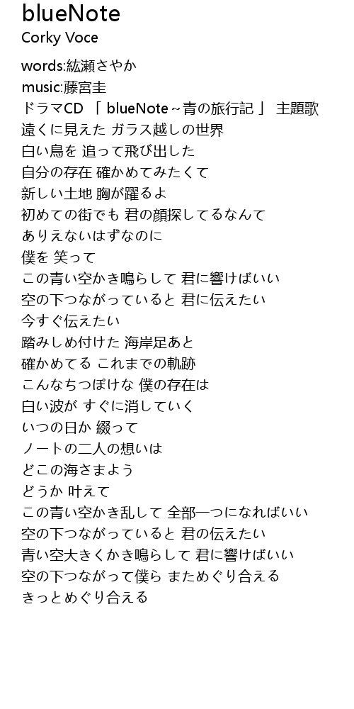 | [00:09.96] | ドラマCD 「 blueNote~青の旅行記 」 主題歌 |