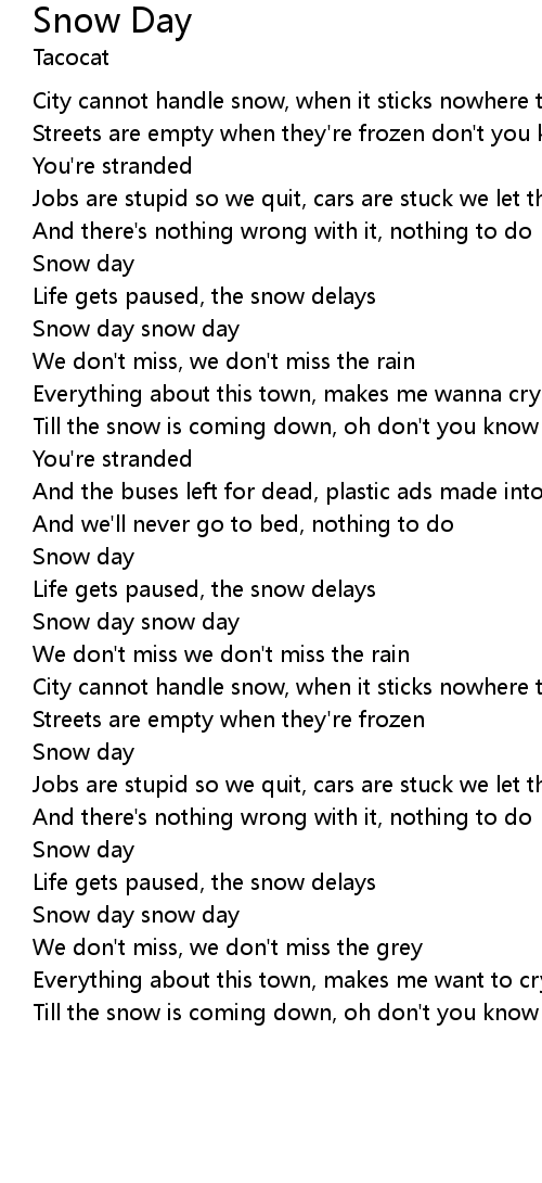 | [01:01.06] | City cannot handle snow, when it sticks nowhere to go |