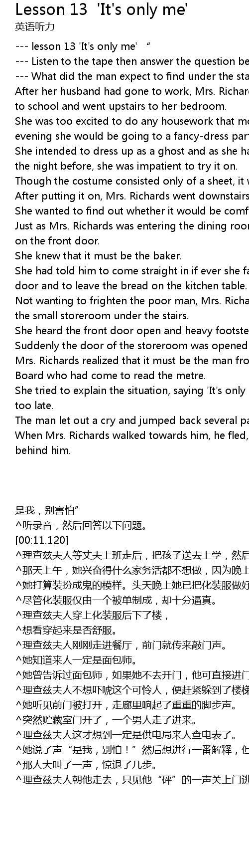 | [00:01.120] | lesson 13 ' It' s only me' " |