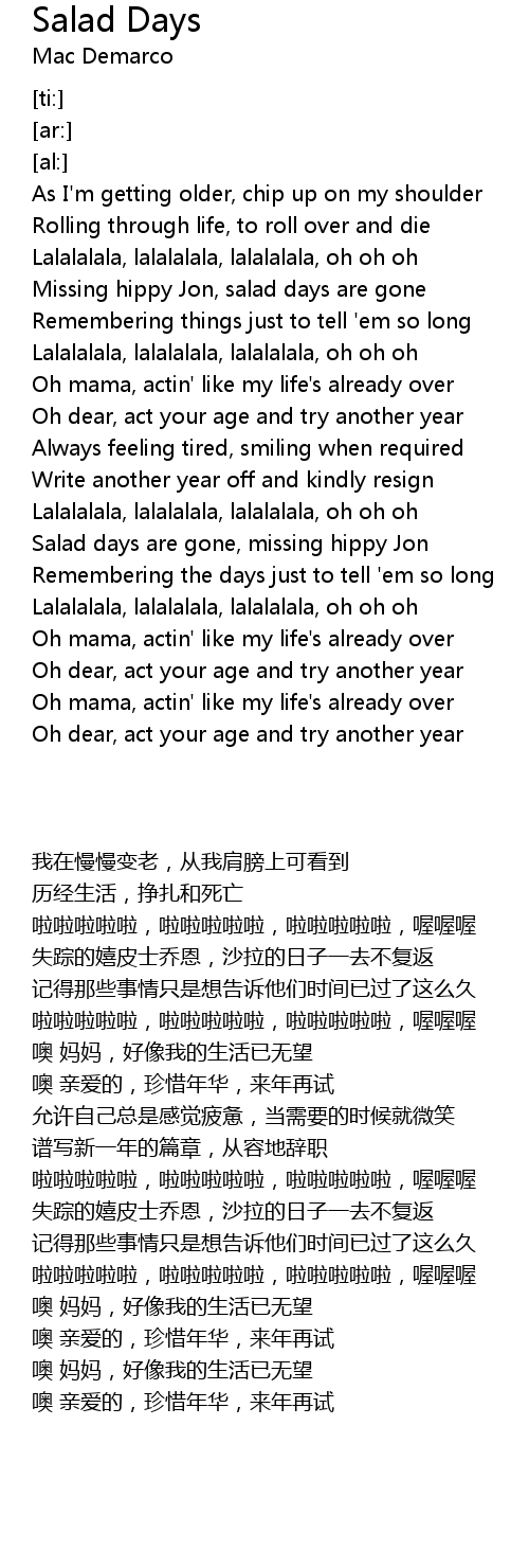 [00:19.44] Missing hippy Jon, salad days are gone