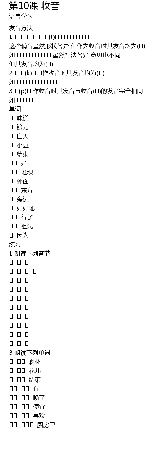 | [00:10.00] | 1 ㅅ ㅈ ㅊ ㅌ ㅎ ㅆ(t)ㅅ ㅈ ㅊ ㅌ ㅎ ㅆ 这些辅音虽然形状各异 但作为收音时其发音均为(ㄷ) |