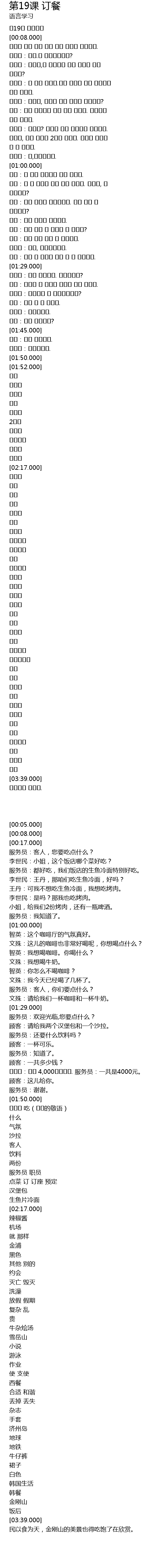 | [00:05.000] | 제19과 주문하기 |