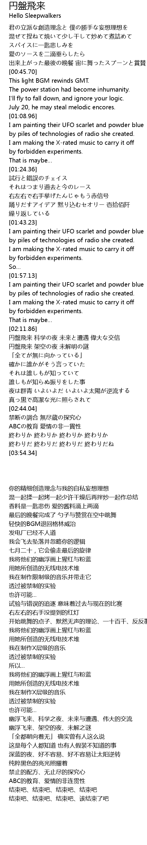 | [02:14.61] | 円盤飛来 科学の夜 未来と遭遇 偉大な交信 |