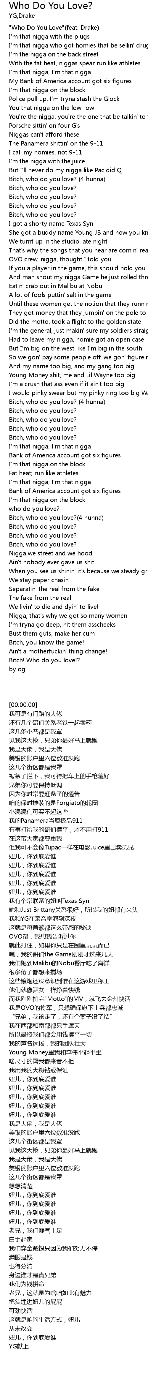 | [02:43.61] | Bitch, who do you love?(4 hunna) |