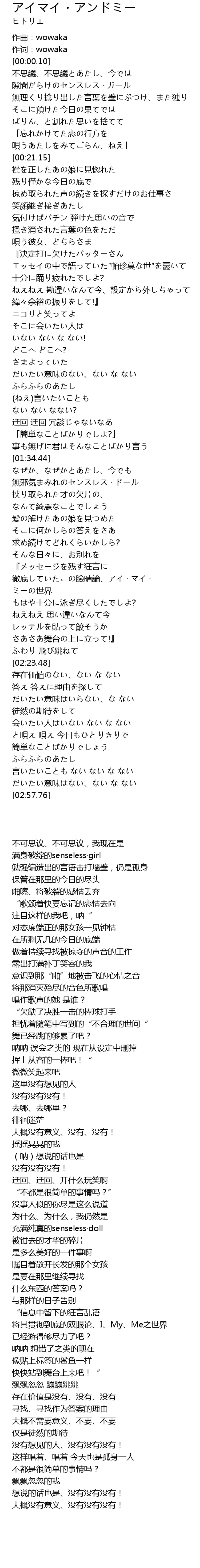 | [00:00.05] | 作词:wowaka |
