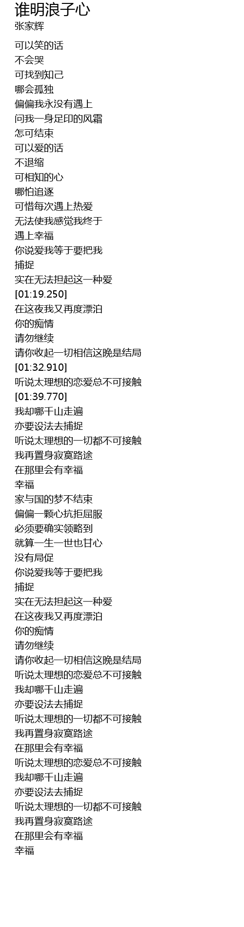 | [01:19.950] | zai zhe ye wo you zai du piao bo |