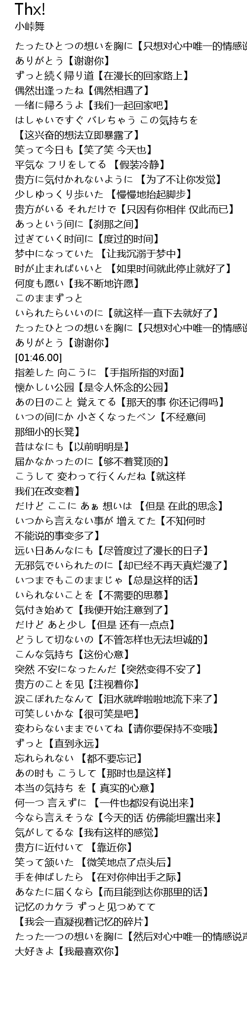 | [01:42.00] | ありがとう【谢谢你】 |