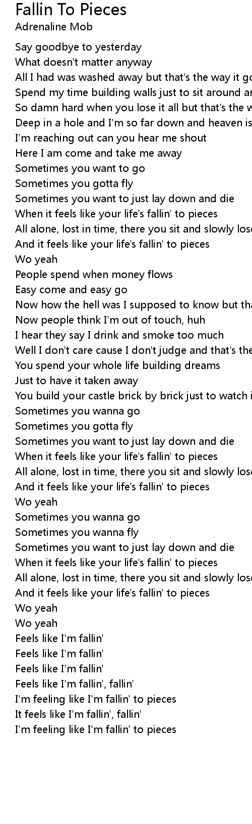 And it feels like your life's fallin' to pieces |