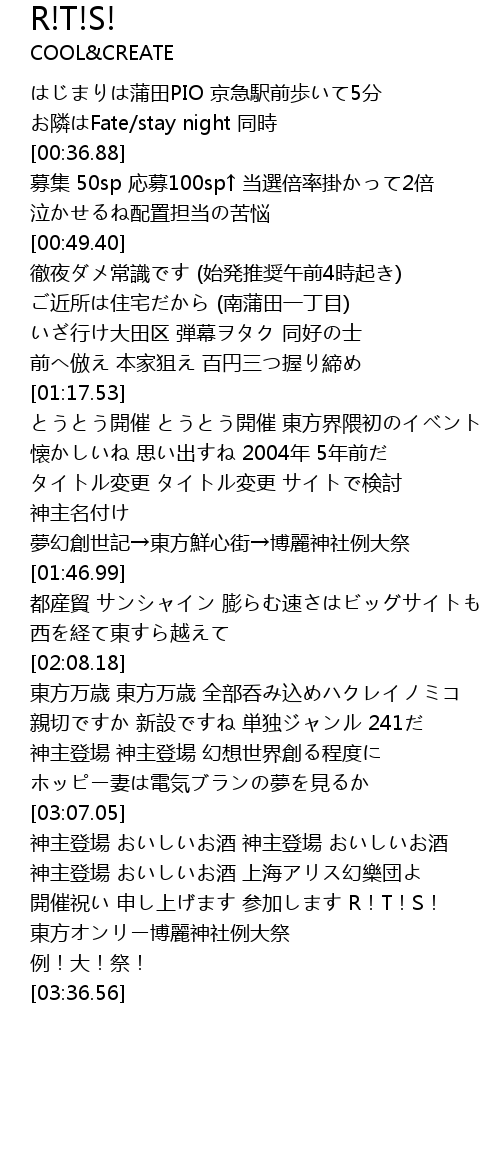 | [03:26.64] | 東方オンリー博麗神社例大祭 |