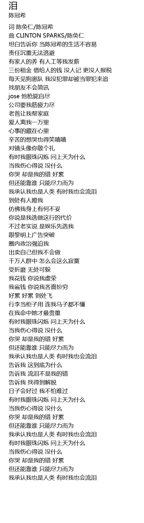 | [02:22.69] | 我承认我也是人类 有时我也会流泪 |