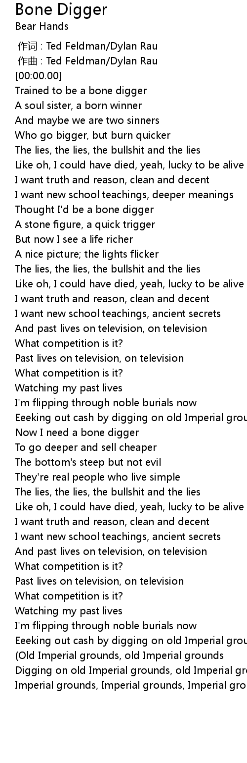 | [03:03.930] | Digging on old Imperial grounds, old Imperial grounds |