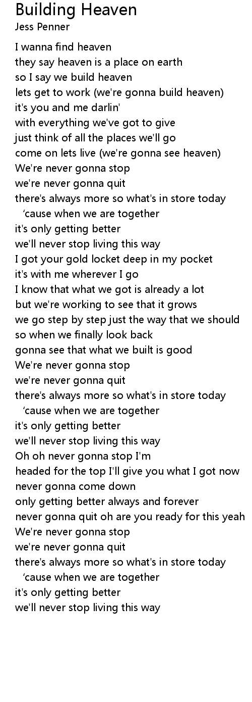 | lets get to work we' re gonna build heaven | |