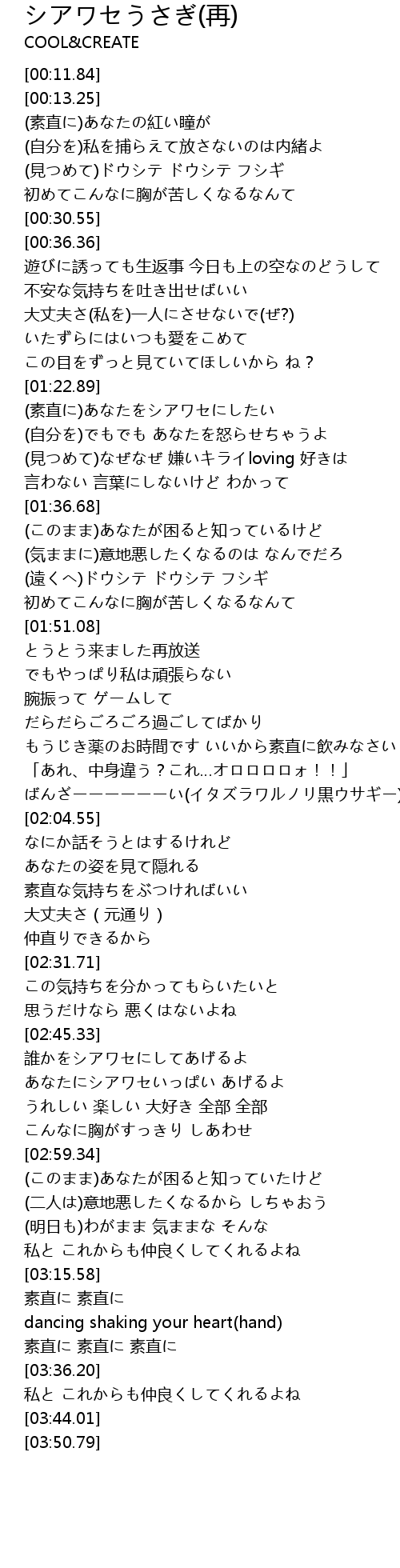 | Song | シアワセうさぎ(再) |