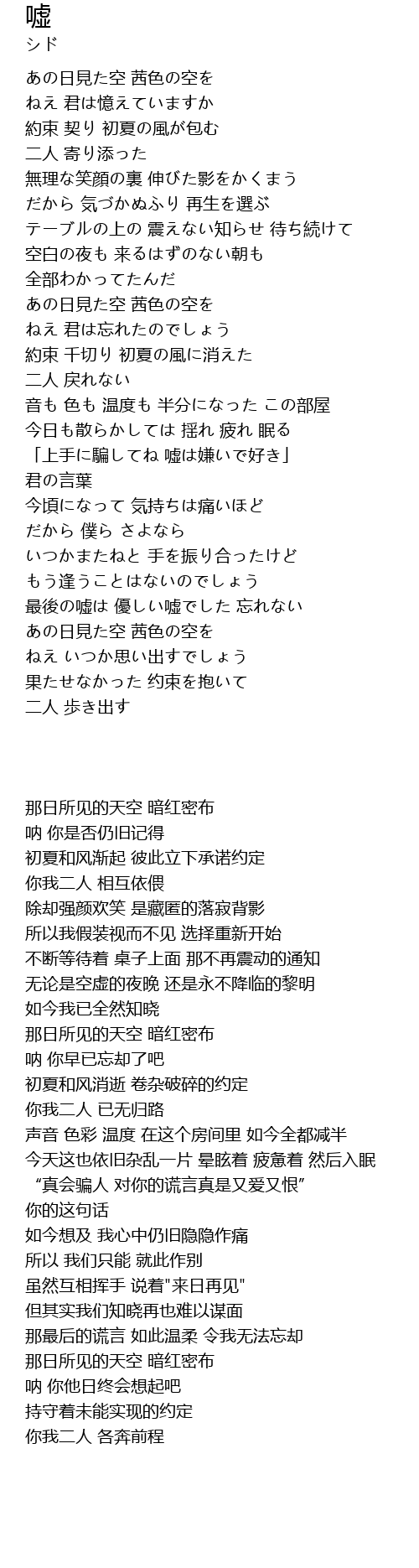 | Song | 嘘 |