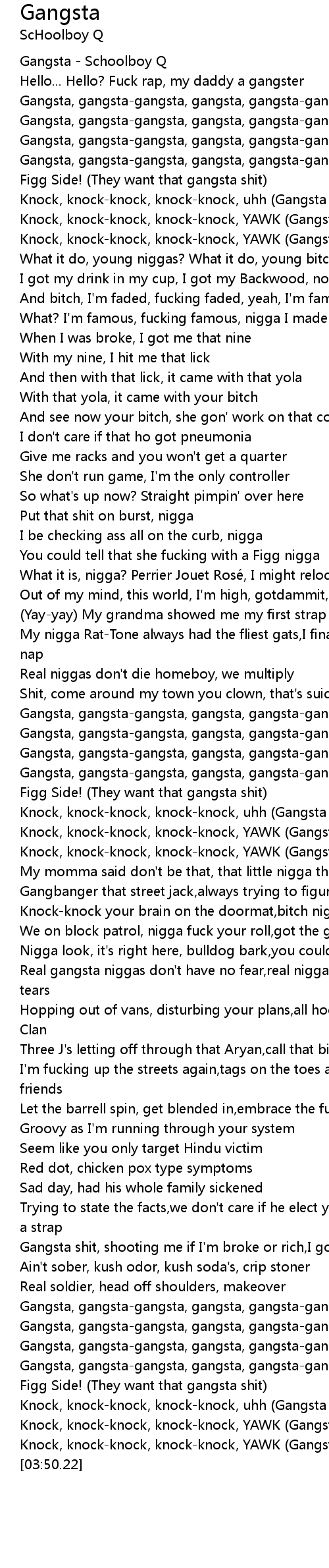 | [03:31.86] | Gangsta, gangstagangsta, gangsta, gangstagangsta, Q |